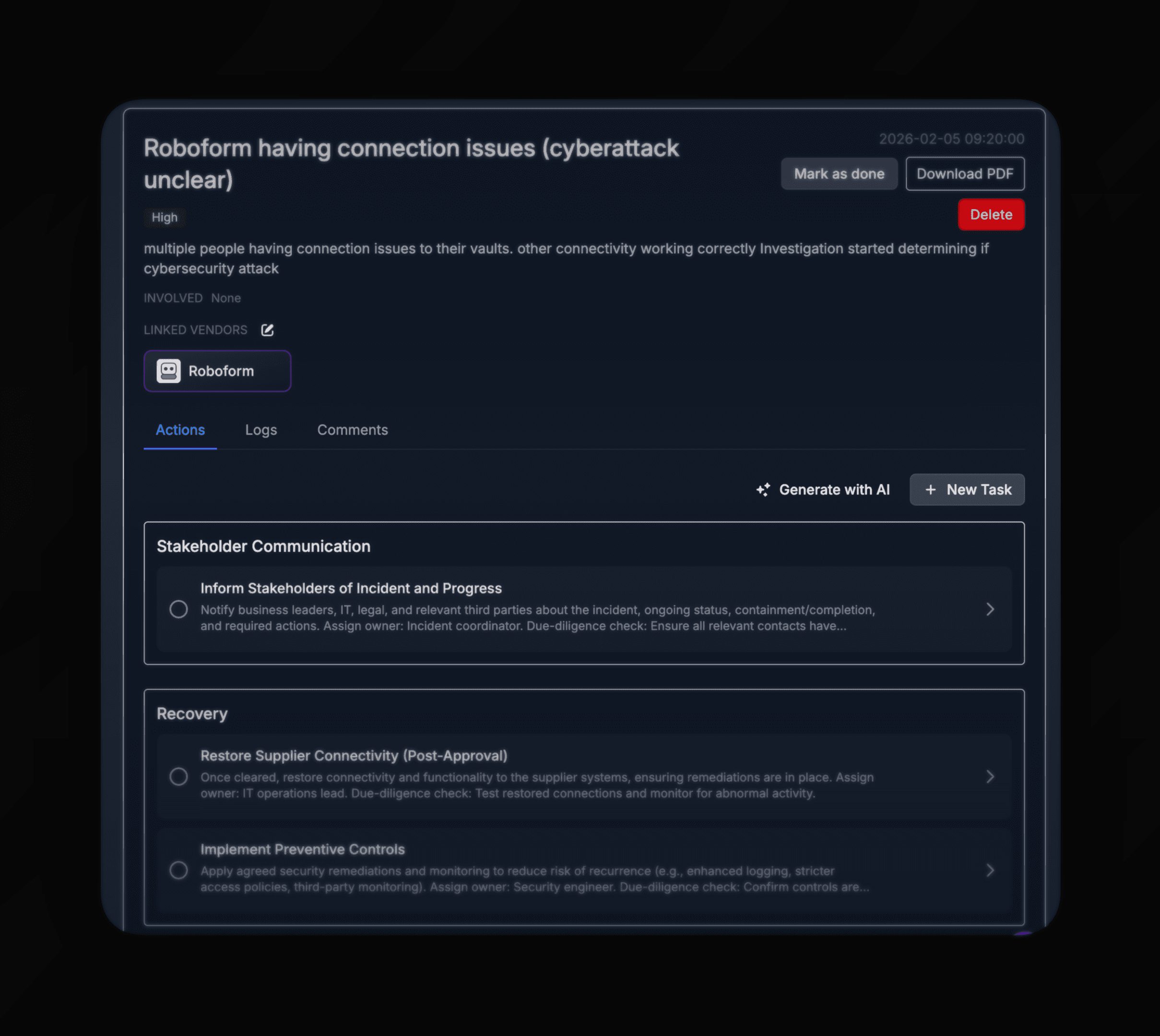 Respond with structure. Track every action. Resolve incidents with confidence.